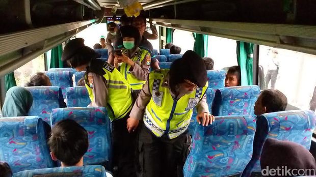 "Kegiatan ini untuk mengantisipasi kaitannya aksi damai di Jakarta. Kami razia bus antar provinsi, kendaraan boks, dan station yang dicurigai. Sasaran kami yang utama adalah senjata tajam, bahan peledak, dan narkoba yang mungkin dibawa penumpang," kata Kapolsek Trowulan, Kompol M Sulkan kepada detikcom di lokasi.